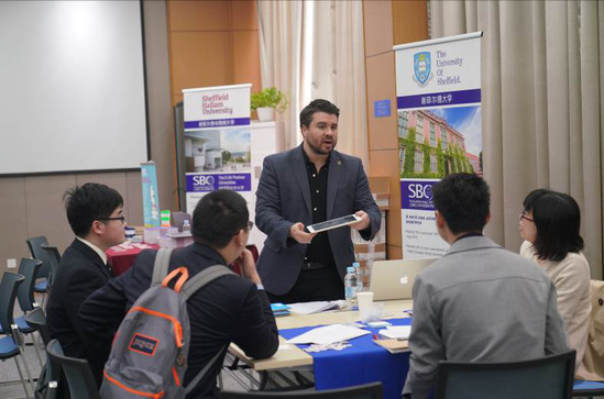 浦京官网中英国际学院2019年九所英国合作大学咨询会于3月12日至13日举行。有近20名来自谢菲尔德大学、利兹大学、布拉德福德大学、哈德斯菲尔德大学、利兹贝克特大学、利物浦约翰摩尔大学、曼彻斯特城市大学、索尔福德大学和谢菲尔德哈勒姆大学的代表,与中英学院2017级200余名学生面对面交流,旨在帮助学生提前了解英国合作大学及学科专业等情况,为学生提供全面、细致的升学指导。英国北方大学联合会代表陪同参加咨询会。