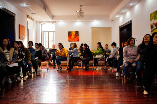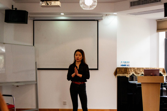 接着,安乐乐女士为大家介绍了音乐律动这个理念的起源,带领在场所有人亲身经历了接下来的两个实验:大家随着一段音乐在纸上画下了自我感知到的代表这段音乐的图形,又请了两位自告奋勇的同学来用肢体“演绎”了这段音乐。通过该互动环节我们不难发现,在没有经过排练、预先教授动作的情况下,人们随着音乐起舞的能力也是出于本能的,而且看来无违和感、十分匹配,在两个实验中,尽管是同一段音乐,在场嘉宾们的创造力确实在随着体态律动不断涌现。