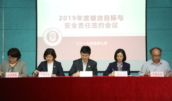 会议期间,校长丁晓东代表学校与各分管(联系)校领导、各职能部处、学院负责人逐一签订2019年度绩效目标任务书和安全防范工作责任书。
