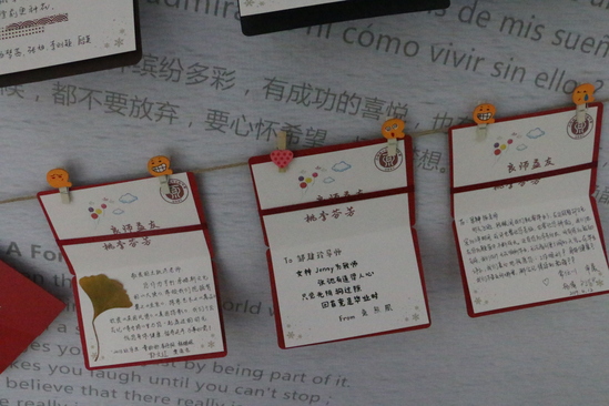 午后,在外院大厅,几份惊喜悄然而至。学院为毕业生们精心准备的毕业纪念相框日历。毕业生们拿到纪念日历时都惊讶于礼品的小巧精致,也深深为其传递出的深情而感动。寄语墙上,挂着每一位导师亲手写给学子的毕业寄语卡片。指导陪伴毕业生们的恩师们用笔写下祝福,毕业生们在寄语墙前寻找写有自己名字的专属卡片,导师们的祝福将给予踏出校园的他们一份勇气和力量。外语学院研究生会也为16级研究生制作了一本《未来之书》,开篇以J.K.Rowling经典语录“We don’t know what we are going to-it shall be better than what we are leaving behind”,祝福毕业生走出校园后的未来会像霍格沃茨魔法学院一样美好绚烂。书中展示着外院优秀校友,以榜样的力量激励即将踏出校门的学子,而穿插其中的各种祝福,也让即将毕业的研究生们感受到外院大家庭的温暖。活动最后,毕业生们也回馈了他们用心写下的对导师的肺腑之言,在毕业展板上留下他们的签名,一笔一划像是将这三年求学生涯永远印刻在上理校园中。