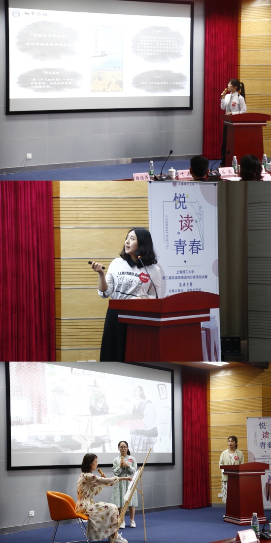 在第二环节,参赛队伍逐一进行了朗读表演并分享读书感悟。选手摘取所读书目中的一段或几段,与大家静心分享。有的激情澎湃、有的字正腔圆、有的惟妙惟肖、有的声情并茂,现场观众无一不感受到满满的书香、悠扬的律动和青春的活力。