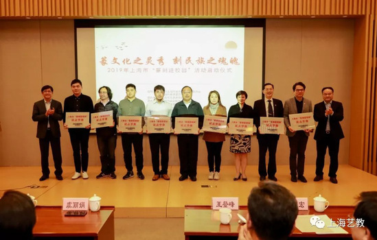 市教委副主任倪闽景和嘉定区副区长王浩为上海市“篆刻进校园”试点学校代表授牌。本次“篆刻进校园”活动在全市共遴选了109所学校作为试点学校,其中试点高校共有6所,浦京官网位列其中。