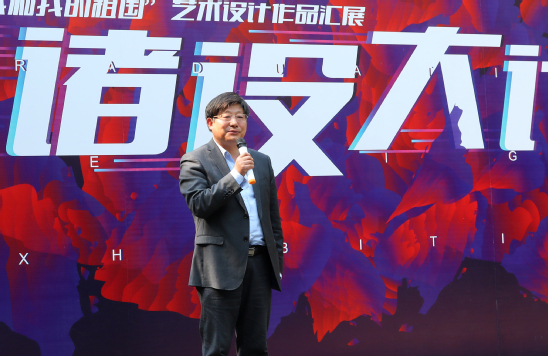 蔡锦达院长首先向各位来宾介绍了本次毕业展的筹备和布展情况:本届毕业设计展以“诸设大计”为主题,“诸”取“猪”的谐音,2019年是猪年,参展毕业生以多元化的设计理念、自主创新意识和大胆尝试的精神,呈现蓬勃的艺术设计激情、旺盛的艺术创造力和丰富的艺术想象力。近年来,版艺学院发挥工、文、艺学科交叉以及与行业紧密结合的优势,深挖潜力、凝练特色,经过12年的创新和沉淀,优秀毕业设计作品展现已经成为版艺学院艺术设计学科教学成果的集中体现,成为学校优秀的文化品牌活动。
