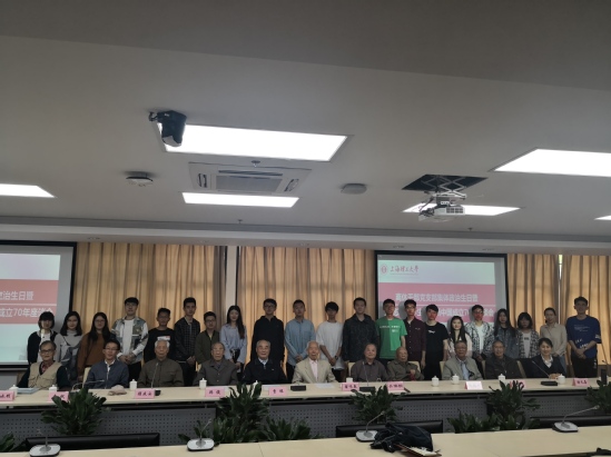 结合上海市委老干部局、市教卫系统“赞成就、助发展、当先进、作表率”正能量主题活动,5月10日,浦京官网离退休党委联合材料学院、基础学院以“不忘革命初心 传承红色基因”为主题,召开离休干部党支部集体政治生日暨老同志与大学生庆祝新中国成立70周年座谈会。离退休党委副书记李帆、基础学院学生党支部书记陈君蕾,以及老干部、老教授、本科生、研究生等近40人参加。本次活动也是配合校关工委开展的“读懂中国”系列活动之一。座谈会由离休干部党支部书记孔德静主持。