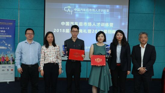 “中国汽车后市场人才训练营”首期招募22人,在过去的一年中,接受了来自汽车后市场领域相关的为期3个月40余课时的企业拓展课程,深入合作企业进行了为期4-6个月的带教实习,并经过严格细致的考核后,获得由企业提供的优厚奖学金和就业直通车。活动现场,与会企业代表和学校领导为结业学员颁发证书。获得最佳学员的张争、黄戈两位同学分别发言,汇报了自己参与项目培训取得的巨大收获,尤其是数据管理、项目管理、供应链、质量管理、电子商务、需求管理等多模块的课程,让同学们极大地拓展了视野、提升了专业素养,并在实习中获得更大的实践锻炼。