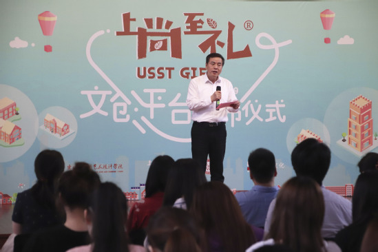 版艺学院党委副书记张炜介绍了“上尚至礼”大学生文创平台的筹建历程,并表示希望通过各部门携手通力合作,设计制作出更多有品质、有内涵、有功能、有体系的校园文创产品,进一步提升校园文化的影响力和育人功效,进而使上理的文化形象在全社会得到更为广泛的传播。