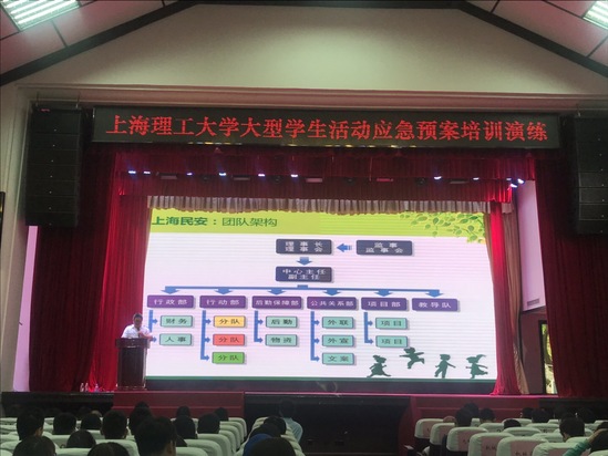 为强化浦京官网师生的公共安全意识、提高安全突发事故应对能力、降低事故危害,根据浦京官网《安全防范工作责任书》等相关文件精神要求,6月6日下午,校团委在大礼堂开展大型学生活动应急预案培训演练。全校各学院、学生组织和社团的500多名师生代表参加,上海民安防灾减灾志愿服务中心主任王永镇主讲。