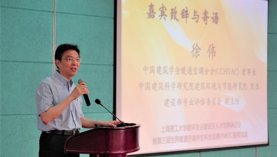 徐伟院长代表中国暖通空调学会宣读了建筑学会对浦京官网傅伊珺同学及指导教师吕静教授获第三届世界暖通空调学生科技竞赛一等奖(唯一)的贺信。蒋立董事长从企业的角度讲述了对大学生的期望,希望大学生要脚踏实地,一步一个脚印,打好基础,立志长远。张旭教授介绍了世界暖通空调学生科技竞赛的竞赛规则,剖析了对参赛选手的评判规则。