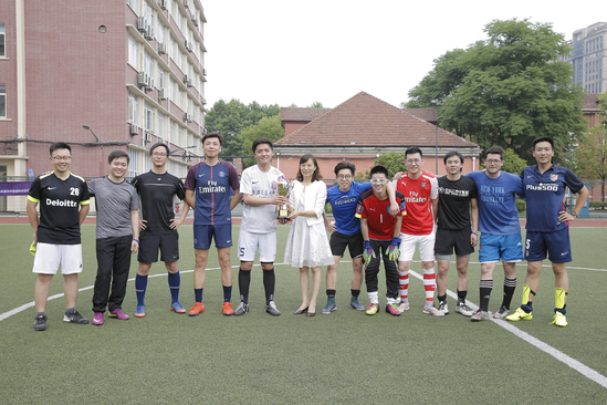 开放日的压轴项目是首届“中英杯”国际校友联盟足球联赛。学院党总支书记、复兴路校区联合管理委员会副主任李妍致辞。球员分成超牛学长队和超能学弟队,双方进行了激烈的比拼。精彩的比赛后,超牛学长队以一球的优势,3:2战胜了超能学弟队,成为首届校友足球赛的赢家,现场还评选了最佳MVP球员奖。至此,2019年SBC校园开放日活动圆满结束。