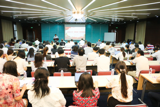 6月18日下午,由教务处、教师教学发展中心共同举办的课程思政师资专题培训在图文信息中心第一会议室举行。校党委副书记、纪委书记刘道平,华东师范大学生命科学学院杜震宇教授受邀做主题报告。各学院教学院长、专业负责人、上海市及校级课程思政项目负责人及团队成员、近两年上海市精品课程及本科重点课程负责人及团队成员等100余位教师参加。活动由教务处处长朱坚民主持。