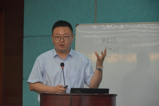 最后,环境与建筑学院副教授张晓东以《大气污染控制工程》课程为例,通过现场示范课的形式分享了在专业课程教学中发掘和融入思政元素的心得和经验。