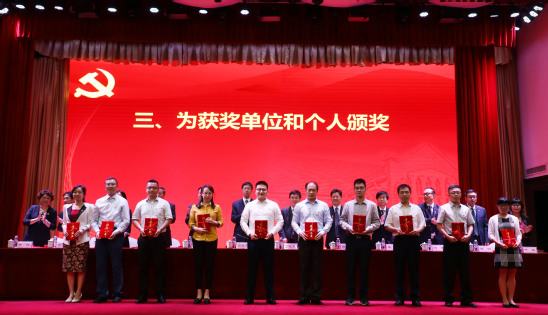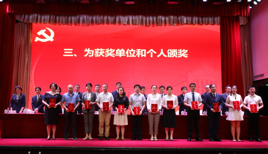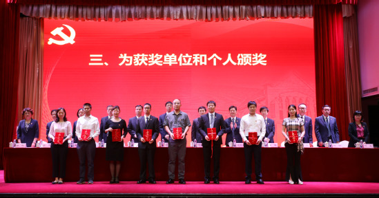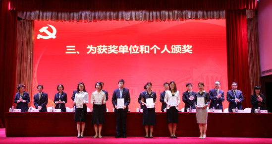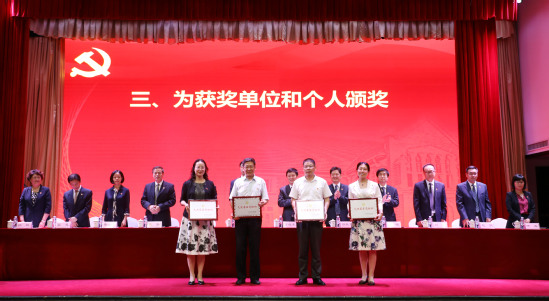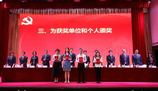 大会在雄壮的国歌声中拉开序幕。党委副书记孙跃东宣读了入选教育部“双创”工程和上海市基层党建“质量提升工程”的先进集体,获得市、校“两优一先”荣誉称号的先进集体和个人、获得学校2019年“卓越党支部”教工党建案例的基层支部等多个表彰决定。党委常委为获奖代表颁发了奖牌和证书。