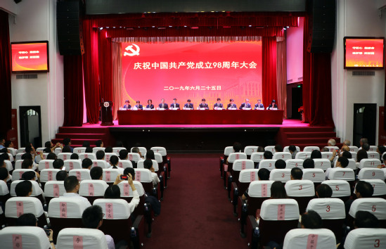 6月25日下午,学校在大礼堂召开庆祝中国共产党成立98周年大会,重温党的光辉历程,弘扬党的优良传统,表彰一批在学校事业发展和党建工作中表现突出的先进典型。全体在校校领导、全体中层干部、党支部书记、特邀组织员、专职组织员、老同志代表、党外人士代表和获奖代表共500余人参加大会。会议由校党委副书记、校长丁晓东主持。