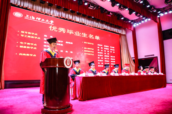 会议最后,满载上理人回忆的校歌响起,全体与会人员深情跟唱,毕业典礼就此落下帷幕。
