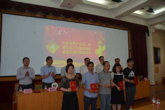 理学院党委副书记、院长魏国亮宣读文件《关于表彰优秀共产党员、优秀党务工作者和先进基层党组织的决定》,表彰在理学院基层党建工作中涌现出的26位优秀共产党员、6位优秀党务工作者及5个先进基层党组织。盛春和理学院党委委员为获得荣誉的集体和个人颁发荣誉证书。