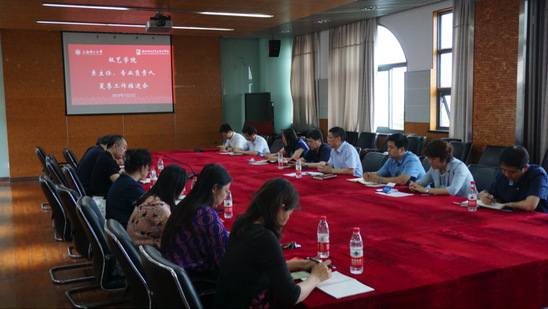院长蔡锦达代表学院领导班子对上半年的工作进行了回顾总结,他特别提到了学院“双万计划”的申报工作,“编辑出版学”通过学校和上海市审核,进入教育部评选阶段,希望其他专业对标“双万计划”申报的重点和关键,继续打磨计划申报书,争取在后续的申报中取得突破。蔡锦达强调,学院2019年暑期工作围绕三个重点进行:一是围绕学科点建设,加大人才引进的力度,特别是对领军人才的挖掘和寻找;二是筹备文创学院,并以此为契机召开人才培养改革的校企论坛,加大与行业的密切联合;第三是落实毕业生的就业工作。他指出,在学校实施大类招生的背景下,要让新生及家长了解和认同学院的专业优势和人才培养特色,学院选派了优秀的骨干教师担当新生班主任。他还建议各专业负责人利用假期制作专业宣传片,同时鼓励学院教师利用假期期间多参加学术交流。