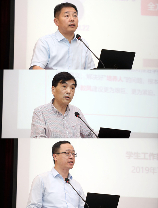 校党委书记吴坚勇作题为“新时代新使命 卓越工程教育改革再深化”的主题报告。吴坚勇充分肯定了开展本科教育思想大讨论的必要性,他表示,在学校周密部署下,各职能部门、各学院积极组织推进,全体师生员工深入参与,取得了三方面的成果。第一,统一了思想、提高了认识,更加深刻认识到新时代党和国家对新时代高等教育的根本性要求。在全国教育大会、新时代全国高等学校本科教育工作会议和“六卓越一拔尖”计划2.0启动大会等会议精神指引下,坚持立德树人根本任务,培养德智体美劳全面发展的社会主义建设者和接班人。第二,查找了不足,明确了目标,更加深刻把握好新时代党和国家对高校的新使命新要求,更加清醒认识到浦京官网人才培养工作与上海市高水平地方大学建设要求所存在的差距。面对新使命新要求新挑战,我们要强化使命意识,超前识变、积极应变、主动求变,探索新时代人才培养的新理念、新范式、新思路。第三,凝聚了共识,制定了一流本科教育行动计划,面向新时代进一步推动学校卓越工程教育改革再深化。同时,他对下一阶段工作提出了要求:一是坚持立德树人的根本任务,进一步完善“三全育人”工作体系;二是全力推进人才强校主战略,打造高水平师资队伍;三是不断深化教育教学改革,以需求为导向加快发展;四是强化质量工程建设,形成上理特色的质量文化;五是强化校风教风学风建设,进一步形成“爱校爱教爱学”的校园氛围;六是加强领导,确保各项教育教学改革任务落实到位。最后他希望全校上下都要将一流本科建设作为当前和今后一段时期重中之重的工作任务加以研究落实;各位校领导也将积极联系相应学院,帮助学院制定完善二级学院行动计划,强化本科教学工作的中心地位;同时也希望各位专业负责人和各部门人员加强协同,积极整合校内外资源,为学校三全育人构建良好的支撑保障体系。
