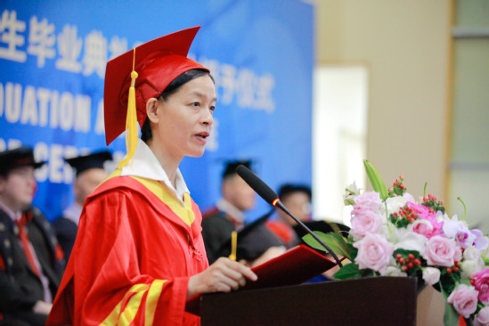 中英国际学院执行院长Laura Bishop教授在毕业典礼致辞中表示:“祝贺你们完成本科学位课程并获得本科学士学位,非母语的全英式教育使你们接触了全新的教育理念和不同的思维模式,切身了解了上海这座都市海纳百川、开明睿智的城市精神。”