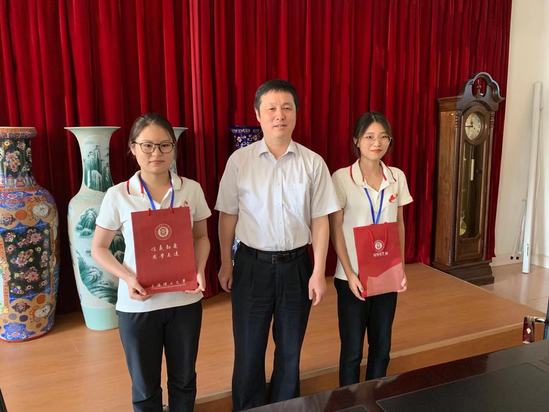 丁校长慰问王倩雯和鲁嘉玲同学