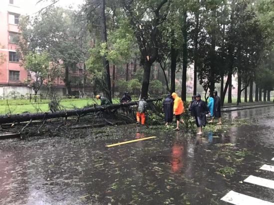 今年第9号超强台风“利奇马”于8月9日正面登陆浙江,受其影响,上海市气象台发布了台风、暴雨双预警。为迎战“利奇马”确保校园安全,后勤管理处协同学校各部门依照防汛防台预案,积极应对、严阵以待,保障全校师生安全和校园秩序。