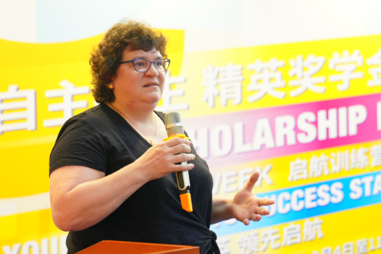 中英国际学院执行院长Laura Bishop教授致闭幕辞。她首先对通过层层选拔进入T1精英计划的学员给予高度赞赏,并向入围决赛和获奖的同学表示祝贺,她鼓励同学们在今后的学习生活中,用英文表达自己的感受和观点,提升英语逻辑思维能力和学术英语表达能力,树立团队协作精神。