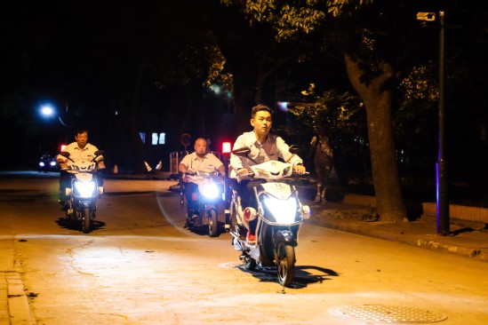 夏日上海的夜晚依旧闷热,保卫处的陈龙和巡逻班同事们一起开始又一次的夜间巡逻。“5+2”、“白加黑”是保卫处的值守常态。这个暑期里,巡逻班对校区重点部位加强巡查,各个校区每日要完成十多次的安全防范巡逻。陈龙对记者讲到:“一晃我已经在这个岗位上工作了九年。每一年、每一个假期、每一次的巡查任务,依旧让我们充满热情,希望我们的守护能够为建设平安校园添砖加瓦!”