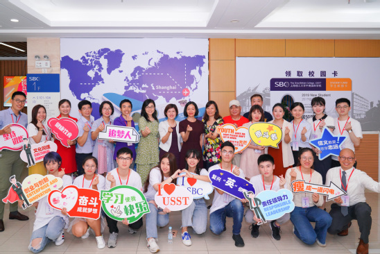 校领导与中英学院迎新师生合影