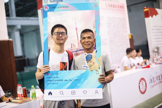 外语学院的卡通人物——“小外”也出现在了迎新现场。穿着上理校服的“小外”为外院新生送来了定制的新生指南。在外语学院2019级新生开学典礼上,每一位新生将写有自己名字的星星贴在了星空板上,他们用点亮星星灯的方式,一同点亮了梦想。“学校和学院今天为迎新准备的指引标识、小礼品和活动让我们感到特别暖心,我也很放心孩子今后在这里学习与生活。”外语学院新生周洪阳的母亲感言道。