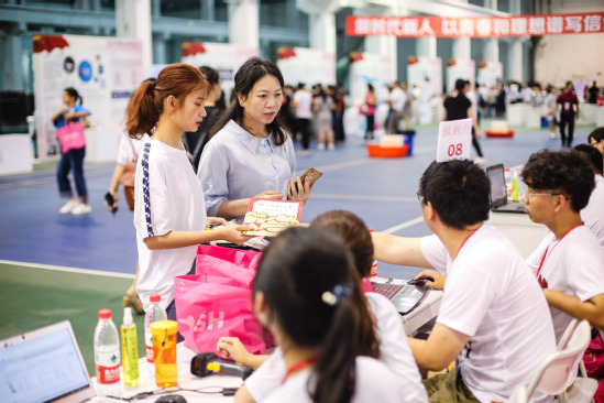 迎新现场的志愿者们