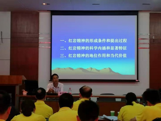 在理论教学环节,研修班特别邀请西南大学马院唐棣宣副教授为全体学员作专题辅导报告。唐教授以“红岩精神之信仰力量”为主题,分别从红岩精神的形成条件和提出过程、红岩精神的科学内涵和显著特征、红岩精神的地位作用和当代价值三大方面阐释了红岩精神的信仰力量。