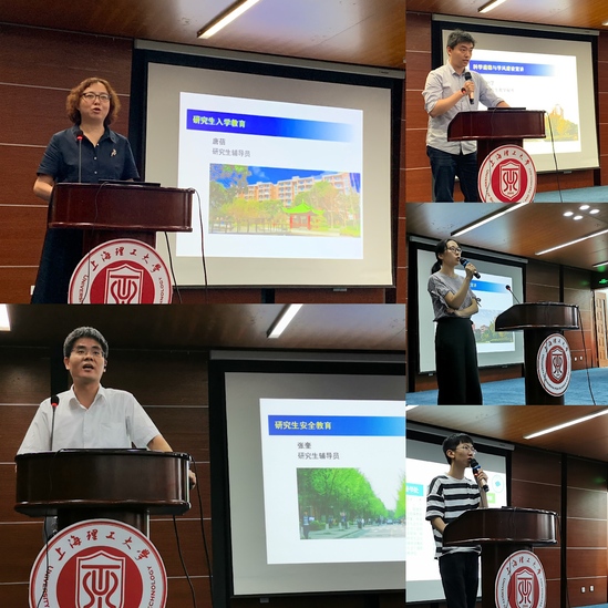 2017级研究生辅导员张奎老师就新生关注的奖助学金发放、专利申请、就业情况及毕业落户等情况进行了说明,并重点就校园安全、人身安全、自我保护等进行了讲解和普及。研究生团学联合会主席王可意为新同学介绍了团学联的相关内容,号召各位同学在提升学术水平的同时,加入团学联发展自身综合能力,为研究生团学添姿增彩。最后,2019级研究生辅导员唐蓓老师向新生们简单说明了班级管理相关事宜,讲解研究生开学阶段工作安排等。