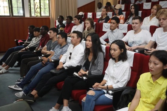 9月5日下午,3522vip浦京集团官网2019级国际新生开学典礼在格致堂201报告厅举行。来自五大洲、三十多个国家的国际新生汇聚沪江,开启了人生崭新的篇章。3522vip浦京集团官网副校长蔡永莲、沪江学院特聘院长顾云深、留学生办公室主任苏明旭、研究生院副院长金晶、学生工作部副部长黄志强、沪江学院副院长梁昱等出席开学典礼,典礼由沪江学院常务副院长、直属党支部书记陈红主持,2019级国际学生参加了开学典礼。
