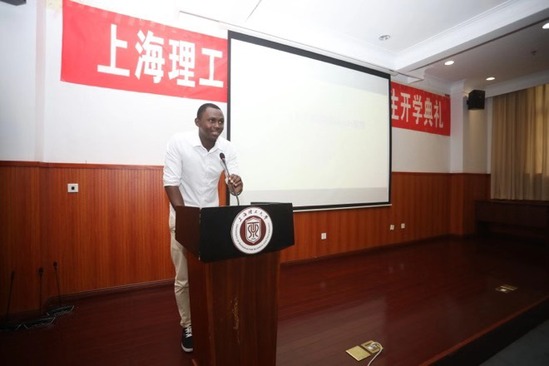 来自几内亚的光电学院研究生萨优Sayon同学作为老生代表发言,他与大家分享了自己本科在上理学习的经历,告诉大家他之所以选择留校读研继续深造,是因为上理是他成就梦想的地方,他还和新生分享了一句中国古话“书山有路勤为径,学海无涯苦作舟”,表示要努力学习,希望未来将自己在上理工学到的先进科技知识带回祖国。