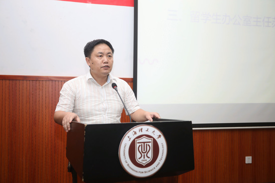 苏明旭在简单介绍留学生办公室的职责和工作后,还特别要求国际学生加强汉语学习,不断提高汉语水平,与指导老师和中国学生保持良好的沟通,严格遵守中国法律法规和学校各项规章制度。