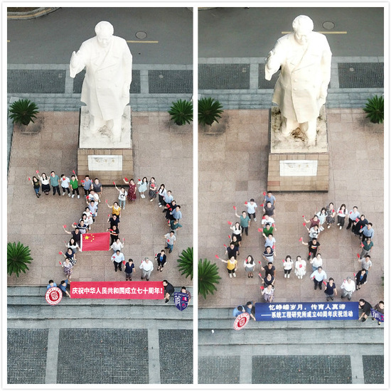 新老教师以“70”、“40”的列队表达对国家、对学院的美好祝愿