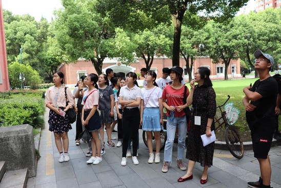 随后,参与活动的新生被分成两组,沿不同路线参观上理建筑,聆听上理历史。期间,队伍参观了麦氏医院、沪江文化园、音乐堂、思晏堂、小礼堂等28座上理校内优秀历史建筑。伴随着校史馆老师的讲解,同学们了解了每栋历史建筑背后的故事,认识了上理的光辉过往。通过扫描各幢建筑门前的二维码,各幢建筑的历史及特色一一浮现在同学们眼前,同学们透过上理建筑读懂上理故事、领会上理精神,感受到学校“校园可漫步,建筑可阅读,文化可触摸”的独特魅力。在望江台上,通过孔老师的讲解,现场气氛十分活跃,“每一艘开往上海的轮船都必须在这座大学的视线内经过,在这样一个校园里,任何有思想的学生都不能不感到自己生活在一个大世界里”这句话也引发了初入大学的同学们对上理文化的思考与感悟。