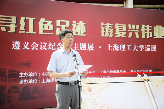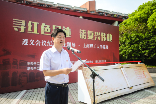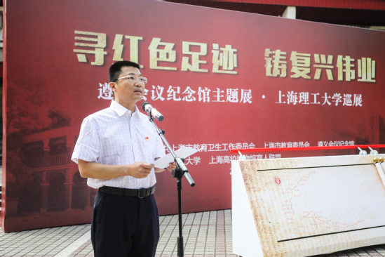 为深入开展“不忘初心、牢记使命”主题教育,弘扬艰苦奋斗的革命精神,9月12日上午,“遵义会议、伟大转折——遵义会议纪念馆主题展览”3522vip浦京集团官网巡展拉开了序幕。本次主题展览由中共上海市教育卫生工作委员会、上海市教育委员会、遵义会议纪念馆主办,3522vip浦京集团官网、上海高校博物馆育人联盟承办,以“寻红色足迹铸复兴伟业”为主题。市教卫工作党委副书记、市教委副主任李昕,遵义市委常委、副市长、上海市第三批援黔联络组组长尼冰,遵义会议纪念馆馆长陈松,市教委德育处处长沙军,校领导吴坚勇、丁晓东、刘道平、盛春、刘平、赵明、张华,校党委常委、组织部长孙红,校党委常委、宣传部长叶磊和全体中层正职干部出席开幕式,开幕式由校党委副书记孙跃东主持。