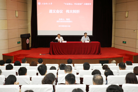 巡展开幕式之后,遵义会议纪念馆馆长陈松为全体校领导、中层干部、党支部书记、组织员、机关科级干部280多人上了一场题为“遵义会议、伟大转折”的专题党课,专题党课由校党委书记吴坚勇主持。