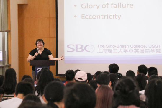 学院执行院长Laura Bishop教授以“Surviving and Thriving in a British Classroom”为题,讲解了英式教育理念、英式幽默等英国文化,她鼓励新生们在大学期间养成良好的学习生活习惯,课堂内外都要付出行动和努力,带着问题进课堂,积极与授课老师进行讨论、交换思想、进行辩论;带着问题出课堂,勇于尝试新鲜事物,积极参与校园文化活动,丰富大学生活。