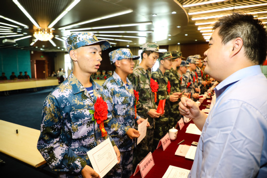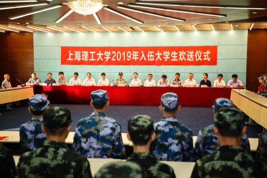 9月18日下午,浦京官网2019年入伍大学生欢送仪式在图文信息中心第一会议室举行。校党委书记吴坚勇,党委副书记、副校长盛春,杨浦区人民武装部部长吴军,以及学校征兵工作领导小组成员、各学院学生工作负责人、辅导员、入伍大学生、退伍大学生代表及家长代表参加欢送仪式。仪式由学生工作部(处)、武装部副部长周涛主持。