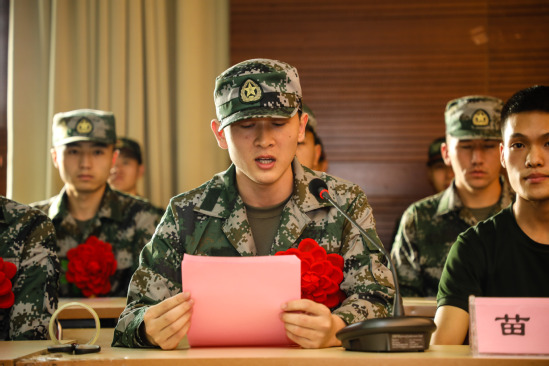新兵薛洋洋代表全体入伍学生发言