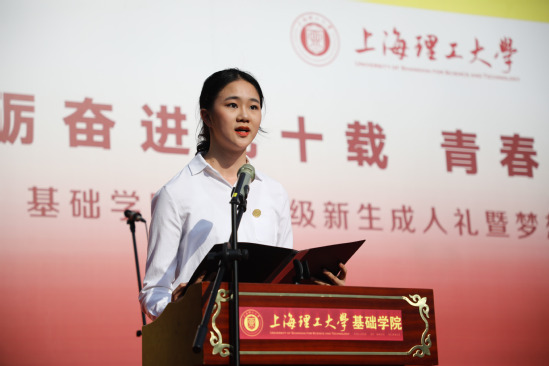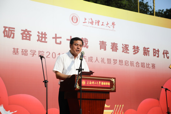 校党委副书记、副校长盛春在致辞中对跨入成人行列的新一代上理学子致以最美好的祝福,他希望能够通过仪式教育,融合公民价值要求与校训精神,培养当代青年爱国主义情怀、强化公民意识,期望同学们通过成人礼,深化对成人角色的认同与归属,认识到作为成年人的责任。