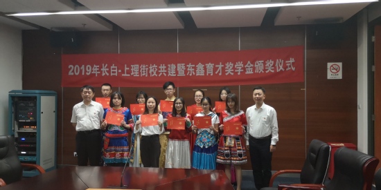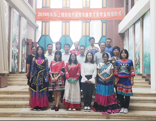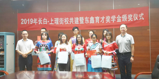 9月23日下午,2019年长白-上理街校共建暨东鑫育才奖学金颁奖仪式在图文信息中心第二会议室举行。上海东鑫电力工程安装有限公司党支部书记卢惠民、长白新村街道党工委副书记吴君隆、浦京官网教育发展基金会主任孟宝全出席。10位今年东鑫育才奖学金获奖学生着各自民族服装出席。会议由学生处副处长、学生资助管理中心主任谢锡浩主持。