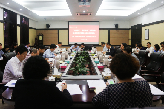 党委副书记、校长丁晓东运用马克思主义思想方法,结合《纲要》《论述》的学习体会,从对接“一带一路”国家战略、构建人类命运共同体的角度谈了自己对树立新时代教育对外开放观、推进新时代国际教育合作的深刻认识。他表示,“一带一路”国家战略是马克思主义中国化的最新成果,是习近平新时代中国特色社会主义思想的伟大胜利。一是从联系的观点看,要统筹国内国际两个大局,从经济全球化和区域经济一体化的视角深入理解推进“一带一路”建设和供给侧结构性改革的重大意义。二是从对立统一的规律看,“一带一路”国家战略将中国与周边国家的争议转化为协同联动发展,将中国在中美博弈中由被动防守转化为主动出击。新时代教育对外开放也要顺应大势,为构建人类命运共同体贡献智慧和力量;新时代国际教育合作也要肩负更加重大的使命,不断拓展与“一带一路”沿线国家的交流。三是从质量互变规律看,“一带一路”建设通过若干年量的积累,一定能产生质变,使中国道路和中国制度在全世界获得更高的认同感。