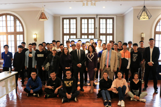 会后,Mark Power一行来到英国茶室,与中英国际学院工程与计算学院的教师代表和2019级全体计划内双学位工科新生面对面交流。利物浦约翰摩尔大学中国战略部总监Julia WANG详细介绍了学校的最新发展情况、学科优势、暑期交流项目等,并热心回答了学生们提出的问题。