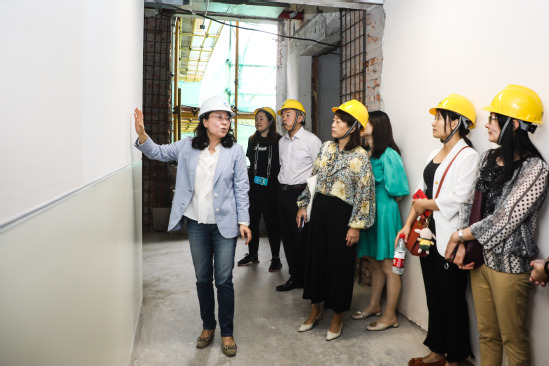 为了能及时听到师生们的反馈,教务处、基建处、信息办等部门负责人担当起样板间“解说员”,现场介绍设计亮点、使用方法、备选方案等,单就一个楼道的墙壁就小范围做了“常规款”“浮雕款”两种风格让师生对比参观选择。
