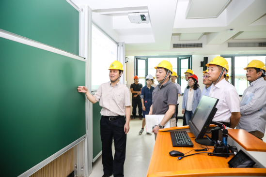 新教室立马启用会不会影响到健康?教室墙面磁性书写墙能使用多久?智能教室如何课后预约使用?讲台旁能否加一个茶杯架?师生们也根据平时的教室使用习惯提出了自己的建议。由此,参观现场俨然变成了一场小型研讨会。“关于磁性书写墙的选择,我们前期进行了充分调研,从6种备选涂料中选择了更环保更耐用的一款,耐擦洗次数10万次以上。”基建处处长魏林解释道。而对于智能教室的课上课后使用等意见,教务处处长朱坚民则表示,教室的实时录播系统可以让老师们边上课边录制视频,一方面可以实现远程对教师课堂进行督导,另一方面又方便同学们课后回顾课堂所学,将有效提升课堂质量。