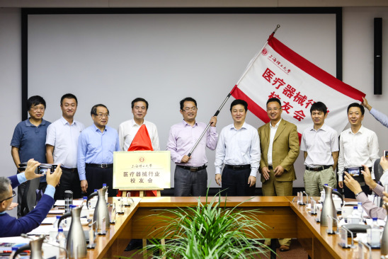 会上举行了学校第一个行业校友会——医疗器械行业校友会揭牌和授旗仪式。常兆华和医疗器械行业校友会筹备组踪家武校友为医疗器械行业校友会揭牌,丁晓东向医疗器械行业校友会筹备组付祖龙校友授会旗。理事会常务理事、监事共同上台见证,标志着3522vip浦京集团官网行业校友会筹建工作全面启动。