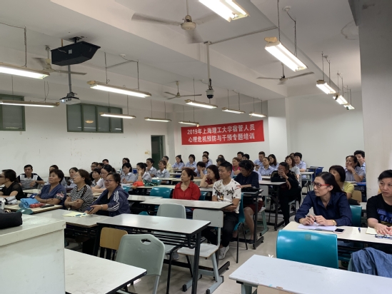 针对与寝室大学生关系密切的宿管人员,学校邀请了上理工心理咨询师联盟单位成员林紫心理咨询机构的专业讲师作《2019年学校宿管人员心理危机预防与干预专题培训》。培训聚焦心理危机的识别和预防,并通过现场演练的方式学习QPR技术。60余名宿管人员参加了此次培训。