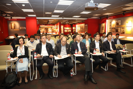 随后,在党性修养主题教室,党史档案展示区围绕“理想信念”“宗旨观念”“优良作风”“反腐倡廉”“善于学习”“群众路线”等六个板块,展示了党的历史上一些珍贵档案资料。与会人员逐一细细品读,透过历史这本“教科书”深深体会到老一辈无产阶级革命家身上所闪耀出的党性的光辉。中浦院教研部杨志强博士以“初心与使命——新时代共产党员的党性修养”为题,进一步解读了档案资料背后的历史故事以及党的初心使命。